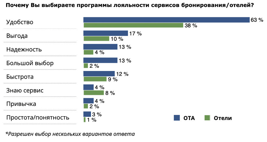 Дополнительным фактором выбора в пользу сервисов бронирования становятся программы лояльности, которыми отели, как правило, располагают реже или реализуют менее масштабно.